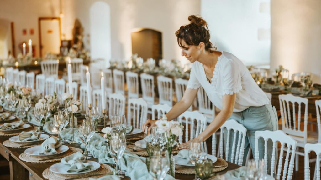 Je suis convaincue que chaque mariage est unique, et je m’efforce de créer une ambiance qui reflète la personnalité et les envies de mes clients. J’aime jouer avec les couleurs, les matières et les textures pour créer des décors uniques et inoubliables.